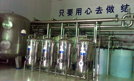 原水→多介质过滤器→活性炭过滤器→精密过滤器→反渗透设备→电去离子(EDI)→纯水箱→精密过滤器→用水点(特点:环保,自动化程度高,初期投入大,价格相对比较贵)