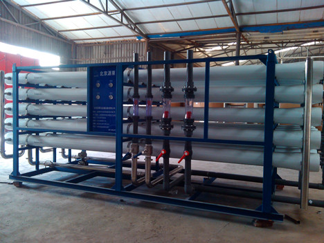 反渗透设施生产纯水的关键有两个,一是一个有选择性的膜,我们称之为半透膜,二是一定的压力。简单地说,反渗透半透膜上有众多的孔,这些孔的大小与水分子的大小相当,由于、病毒、大部分有机污染物和水合离子均比水分子大得多,因此不能透过反渗透半透膜而与透过反渗透膜的水相分离。在水中众多种杂质中,溶解性盐类是难清理的.因此,经常根据除盐率的高低来确定反渗透的净水效果.反渗透除盐率的高低主要决定于反渗透半透膜的选择性。目前,较高选择性的反渗透膜元件除盐率可以高达99.7%。