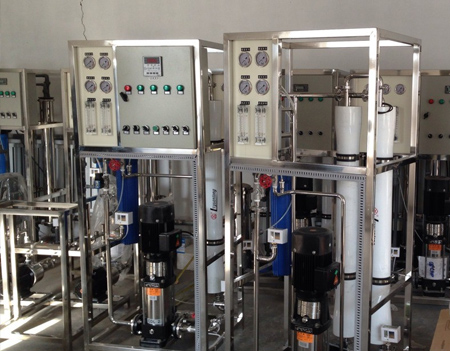 反渗透设施生产纯水的关键有两个,一是一个有选择性的膜,我们称之为半透膜,二是一定的压力。简单地说,反渗透半透膜上有众多的孔,这些孔的大小与水分子的大小相当,由于、病毒、大部分有机污染物和水合离子均比水分子大得多,因此不能透过反渗透半透膜而与透过反渗透膜的水相分离。在水中众多种杂质中,溶解性盐类是难清理的.因此,经常根据除盐率的高低来确定反渗透的净水效果.反渗透除盐率的高低主要决定于反渗透半透膜的选择性。目前,较高选择性的反渗透膜元件除盐率可以高达99.7%。